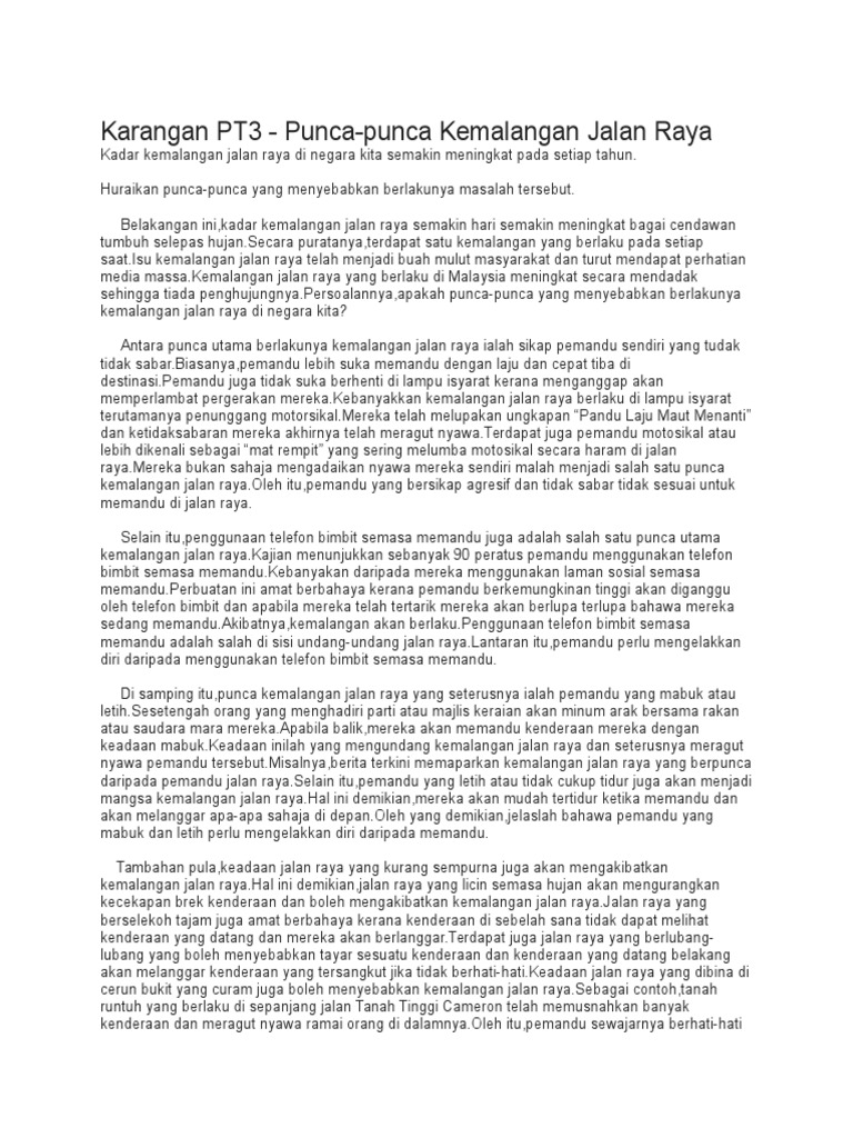 Karanagan Spm Punca Kemalangan Jalan Raya Pdf